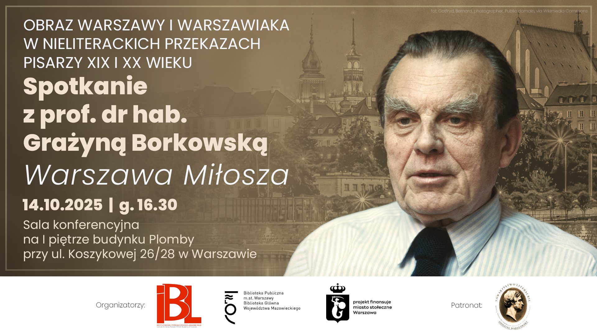 Pierwsze z nich odbędzie się już we wtorek 14 października 2025 o godzinie 16.30. Profesor Grażyna Borkowska opowie o Warszawie Miłosza.