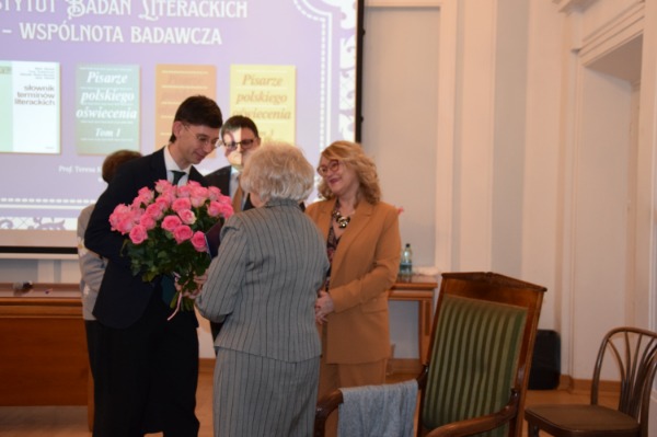 Pani Profesor Kostkiewiczowa, autorka syntez akademickich oraz publikacji z historii literatury oświecenia i teorii literatury polskiej, doktor honoris causa Uniwersytetu Warmińsko-Mazurskiego w Olsztynie (2004) i Katolickiego Uniwersytetu Lubelskiego Jana Pawła II (2011), od ponad pół wieku jest zaangażowana w życie naukowe Instytutu, m.in. w prace redakcyjne „Pamiętnika Literackiego” oraz w organizację Olimpiady Literatury i Języka Polskiego. Ukierunkowuje interdyscyplinarne przedsięwzięcia towarzystw naukowych (Towarzystwo Literackie im. Adama Mickiewicza, Towarzystwo Naukowe Warszawskie, International Society for Eighteenth-Century Studies / La Société internationale d'étude du dix-huitième siècle, Polskie Towarzystwo Badań nad Wiekiem Osiemnastym) oraz środowisk humanistycznych w Polsce i poza jej granicami. Opracowania naukowe Jubilatki nie przestają inspirować badań nad literaturą polską, postrzegane jako wzór doskonałego warsztatu naukowego, wnikliwości badawczej oraz twórczego dialogu z dorobkiem kultury europejskiej i nowoczesną metodologią. Dorobek naukowy Pani Profesor Teresy Kostkiewiczowej oraz jej aktywność zawodowa, odpowiadająca najwyższym standardom etycznym, przynależą do najlepszych tradycji polskiego literaturoznawstwa. Dzięki niezwykłej osobowości Pani Profesor oraz zgromadzonym gościom – naukowcom, przyjaciołom Pani Profesor i obecnej na Jubileuszu rodzinie – uroczystość nabrała szczególnego charakteru.