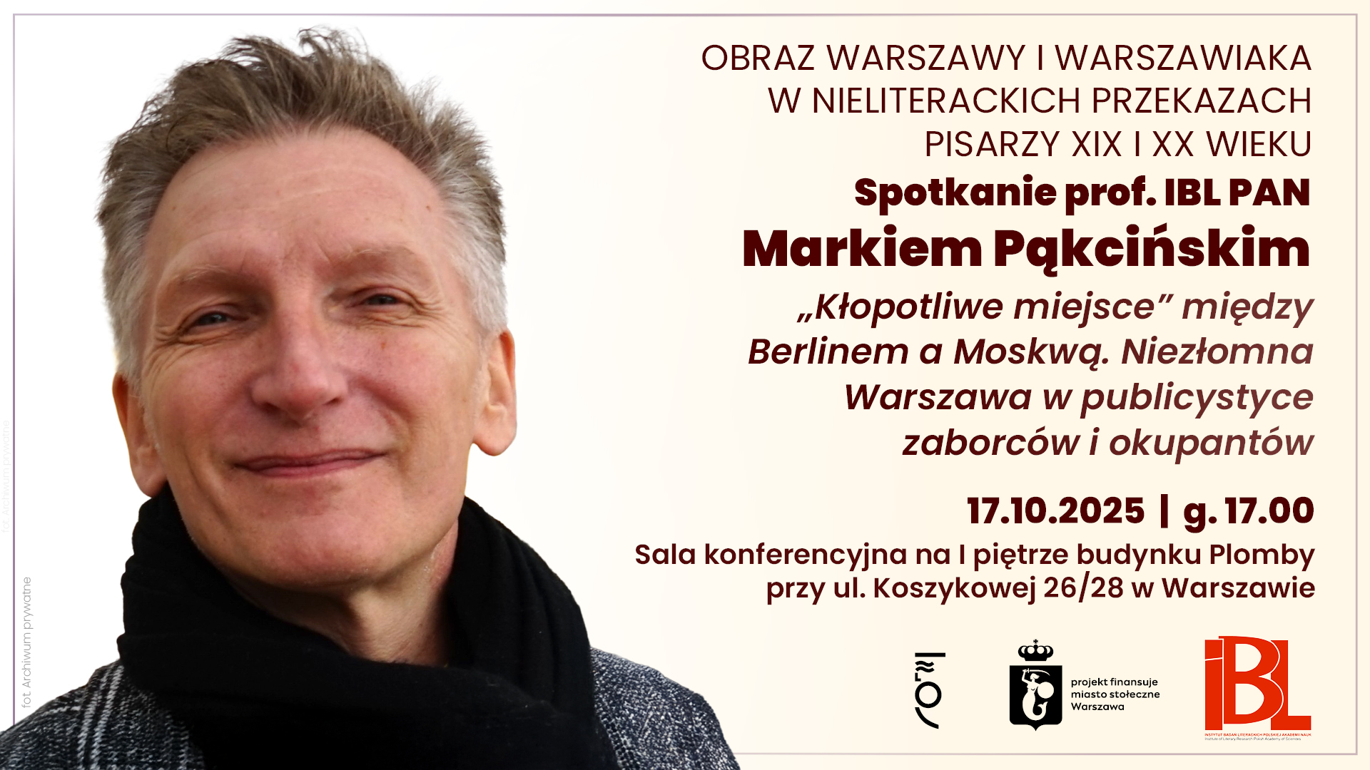 Drugie spotkanie z profesorem Markiem Pąkcińskim pt. "Kłopotliwe miejsce" między Berlinem a Moskwą. Niezłomna Warszawa w publicystyce zaborców i okupantów odbędzie się w piątek 17 października 2025 roku o godzinie 17.00.