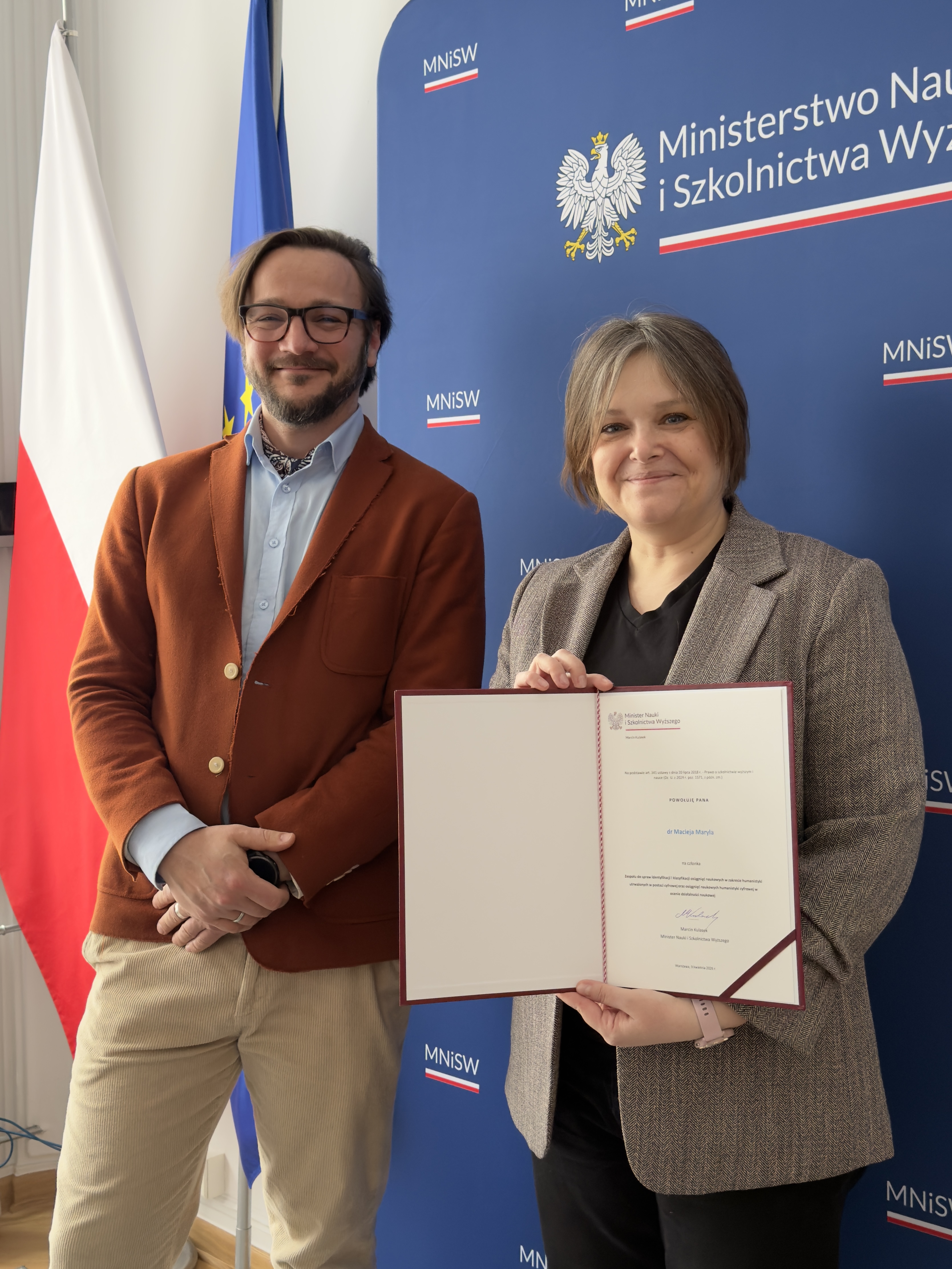 Zespół rozpoczął pracę na uroczystym posiedzeniu z udziałem Ministry Karoliny Zioło-Pużuk. W składzie gremium znalazło się aż troje naukowców związanych z Centrum Humanistyki Cyfrowej Instytutu Badań Literackich PAN: dr Beata Koper, która objęła funkcję przewodniczącej zespołu, oraz dr Magdalena Wnuk i dr Maciej Maryl. Udział przedstawicieli IBL PAN w pracach zespołu to kluczowy krok w stronę realizacji postulatów zawartych w Manifeście Otwartej Humanistyki z września 2024 roku. To wyraźny sygnał, że głos środowiska naukowego dążącego do nowoczesnego i sprawiedliwego systemu ewaluacji, uwzględniającego specyfikę pracy w środowisku cyfrowym, staje się słyszalny na szczeblu rządowym.